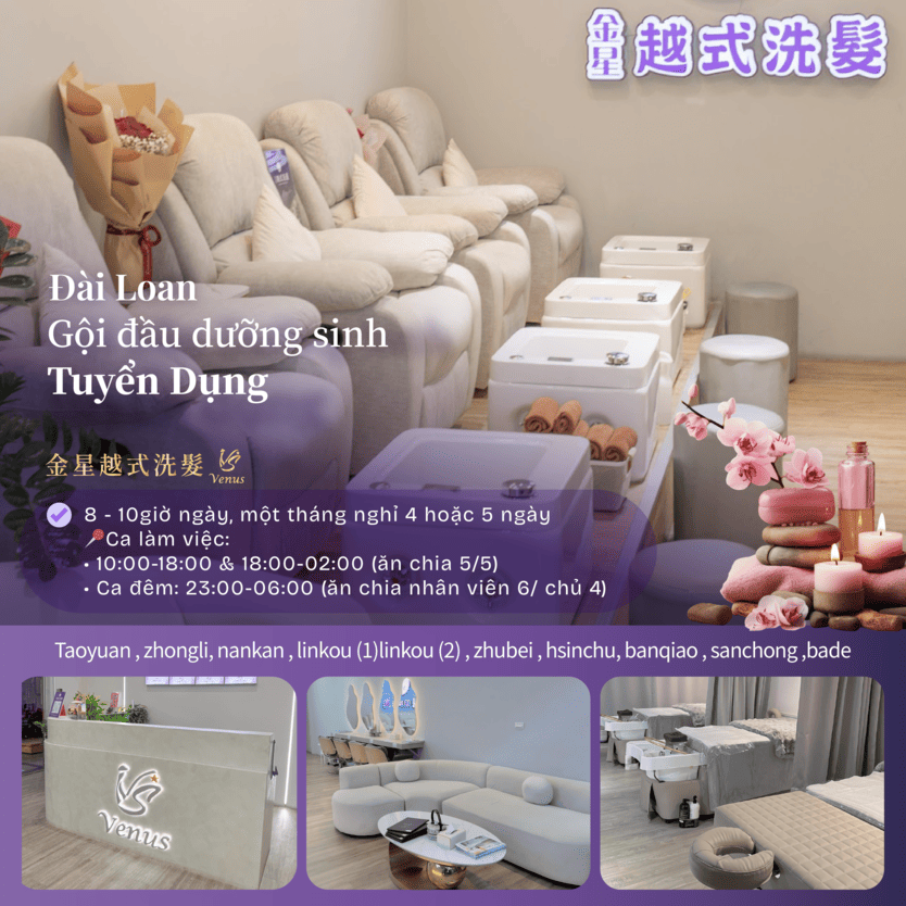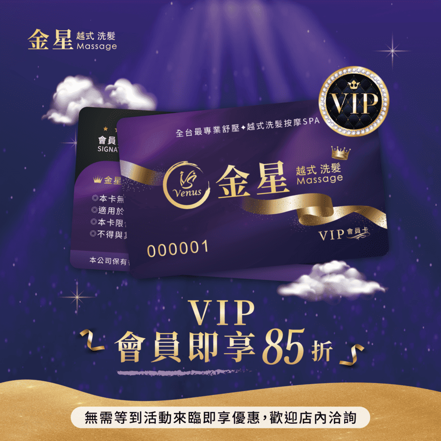 金星越式洗髮自創立從桃園深耕出發,如今已拓展至「新竹、桃園、新北」,共擁有10 間分店,廣受顧客推薦,成為在地消費者信賴的「越式洗髮連鎖品牌」。我們提供「優質洗髮、臉部基礎保養、足部去角質、頭皮按摩、頭肩頸精油舒壓按摩、玫瑰海鹽去角質、中藥草水循環頭療…等特色服務」。結束後再享用「當地養生茶」,為顧客提供全方位的放鬆!